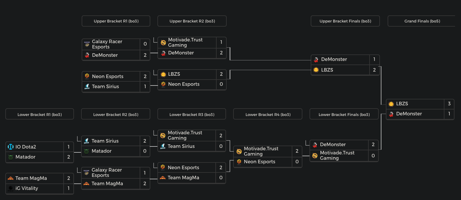 ??LBZS обыграла ??DeMonster в гранд-финале Moon Studio Mid-Autumn League. Встреча завершилась со счетом 3:1. Это первый чемпионский титул для ??LBZS с момента основания команды.