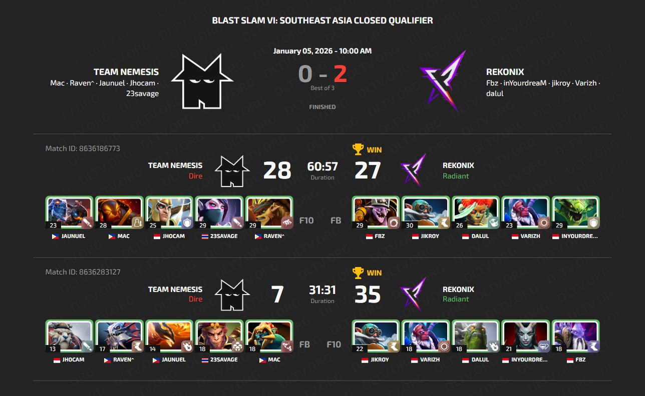 The Rekonix organization, led by Fbz, defeated the main favorite of the qualifiers, Team Nemesis with 23savage, without too many problems, thus making a loud statement and qualifying for Blast Slam VI.
