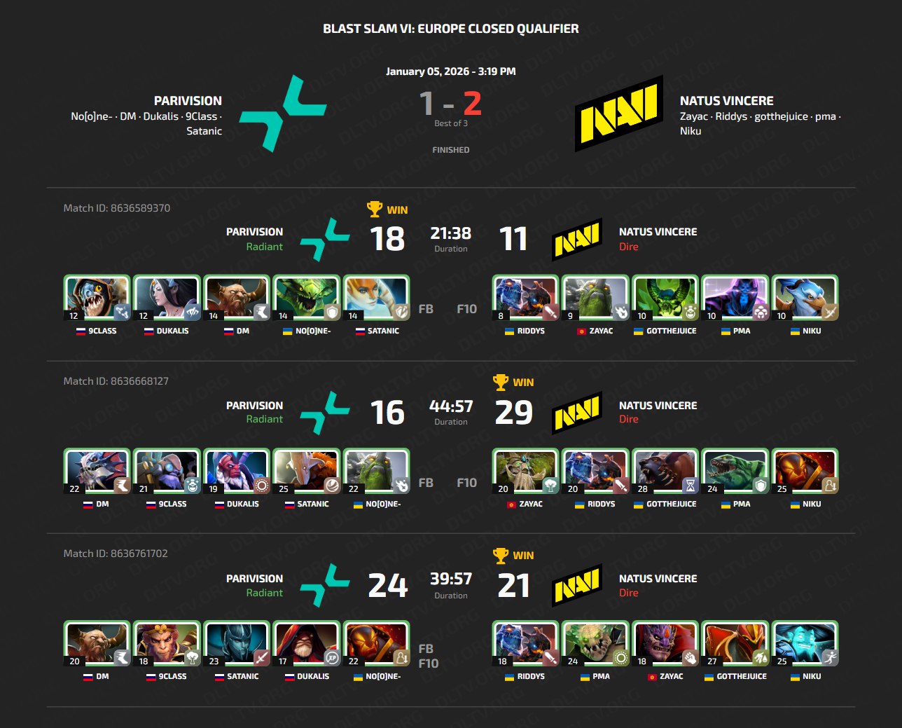 The main event of the day was the victory of Natus Vincere over PARIVISION. Natus Vincere were considered clear underdogs in this matchup, which may have pushed PARIVISION into a bolder and more reckless style of play – for which they were punished on the third map. Holding a lead of almost 15,000 gold, PARIVISION dove under the enemy T4 towers and ultimately paid for this mistake with their tournament slot.