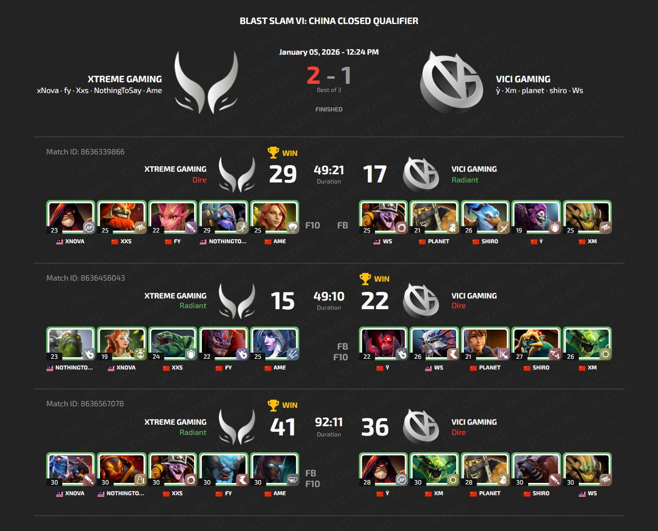 The Chinese qualifier turned out to be interesting. Xtreme Gaming, the main favorites, confidently dealt with their opponents and in the final defeated Vici Gaming, who had recently returned to the pro scene. This match was not only a battle for a tournament slot, but also a personal showdown for Xm against his former teammates from Xtreme Gaming. The third map was the most spectacular: it lasted 92 minutes, and Xtreme Gaming managed to pull off a comeback from a 30,000-gold deficit.