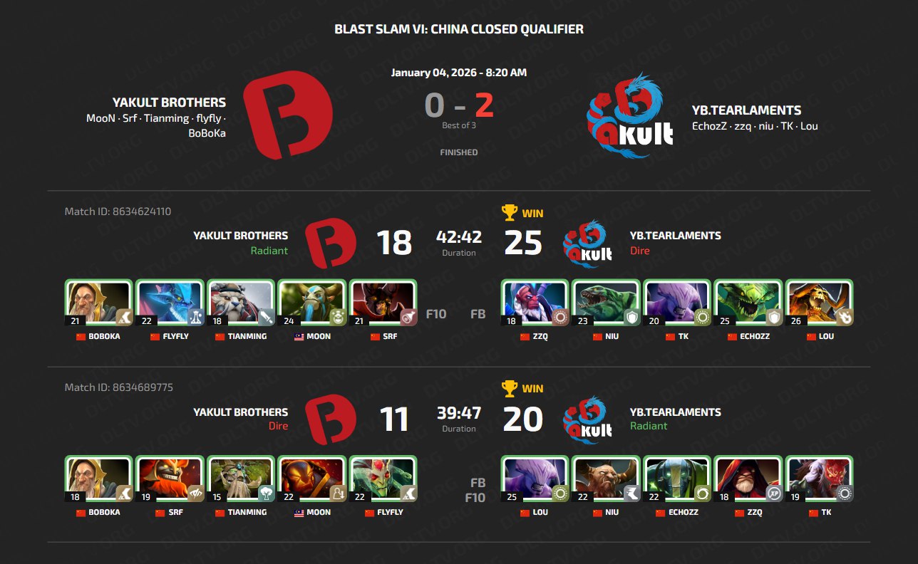 The closed qualifiers for Blast Slam VI took place on January 4–5 in an online format. Based on the results of the qualifiers, Natus Vincere, Rekonix and Xtreme Gaming secured berths to the LAN stage in Malta