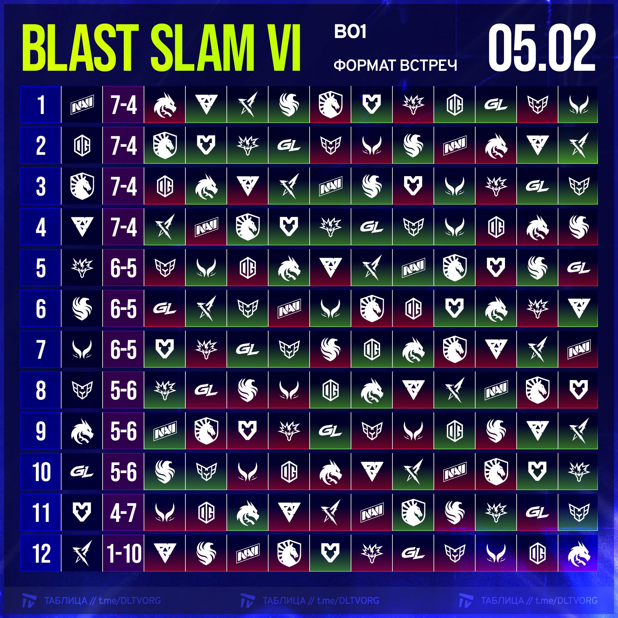 Групповая стадия Blast Slam VI проходит в онлайне с 3 по 7 февраля. Шесть лучших команд пройдут в плей-офф, который пройдет 13-15 февраля на Мальте. Призовой фонд турнира - 1 миллион долларов.