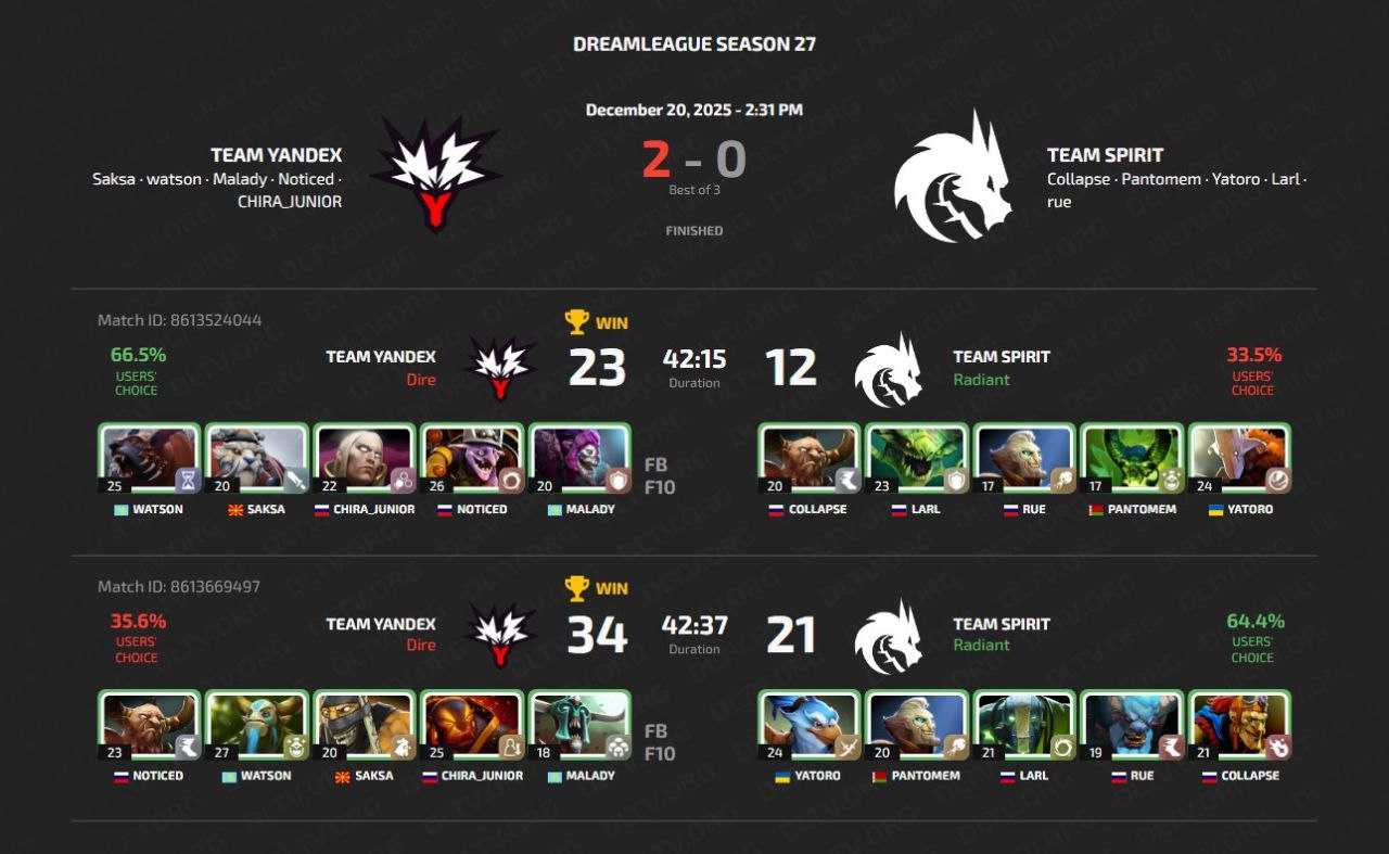 Team Spirit did not become an obstacle for Team Yandex. During the series, CHIRA_JUNIOR finally showed himself, often remaining an outsider in terms of KDA:
