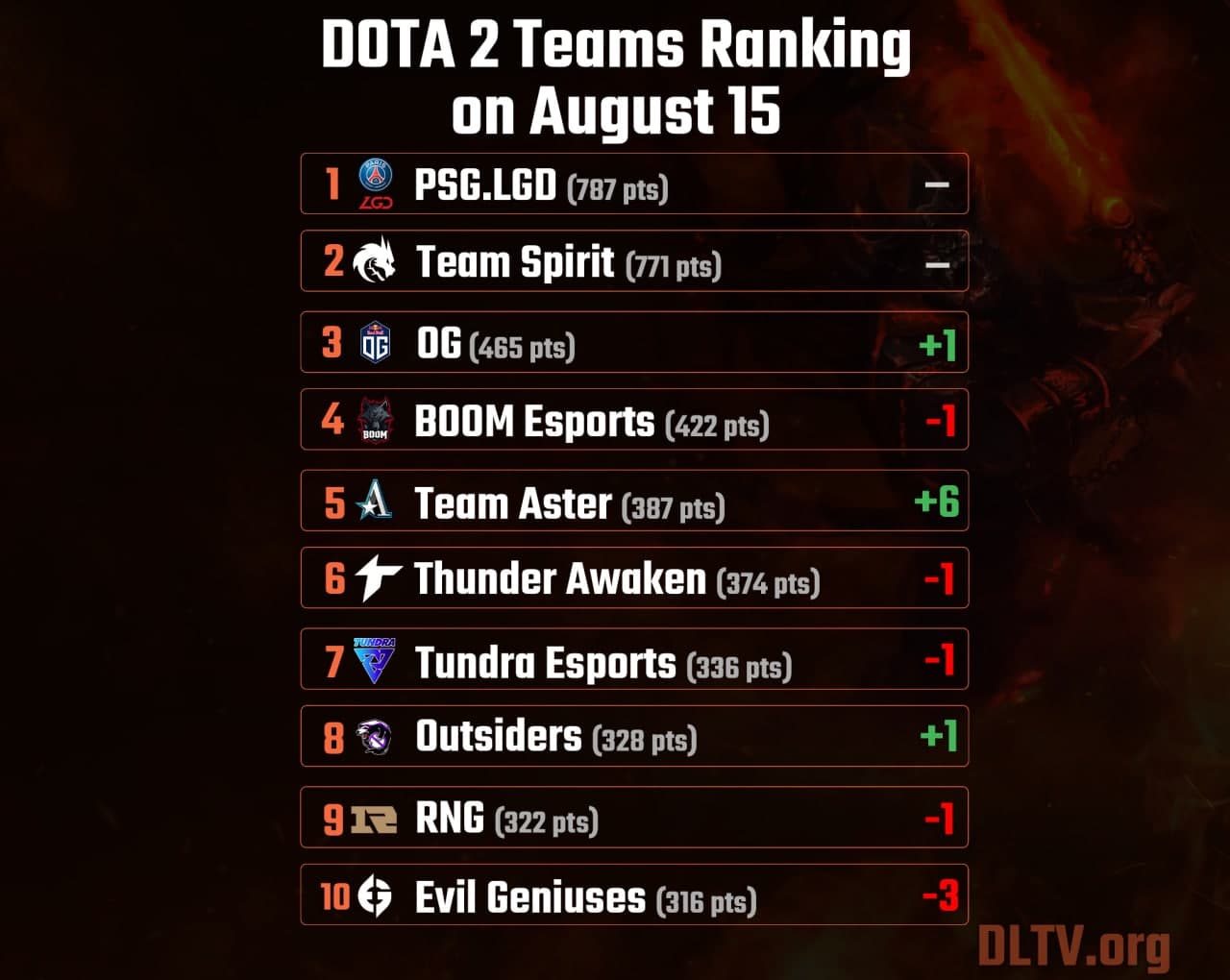 The finalists of the major, PSG.LGD and Team Spirit, haven't changed their positions. Even the championship didn't allow Team Spirit to beat their rival from China. The teams are only 17 points apart.