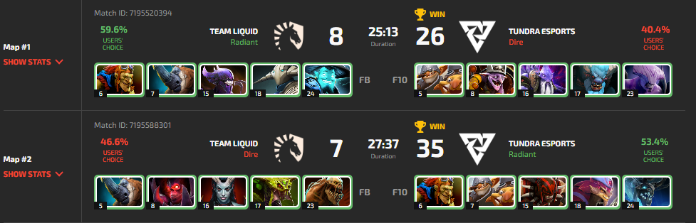 На первой карте Tundra взяли сигнатурного Timbersaw для Malr1ne в мид. Даже 24 выбор героя для Nisha не помог Liquid. С 15 минуты Timbersaw пилил всех и все, остановить его было невозможно. 16/0/7 от Malr1ne и лёгкая победа за 25 минут для Tundra.